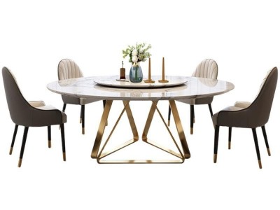 Nordic Marble Table Italian Small Apartment Light Luxury Round Table with Turntable Modern Simple Di