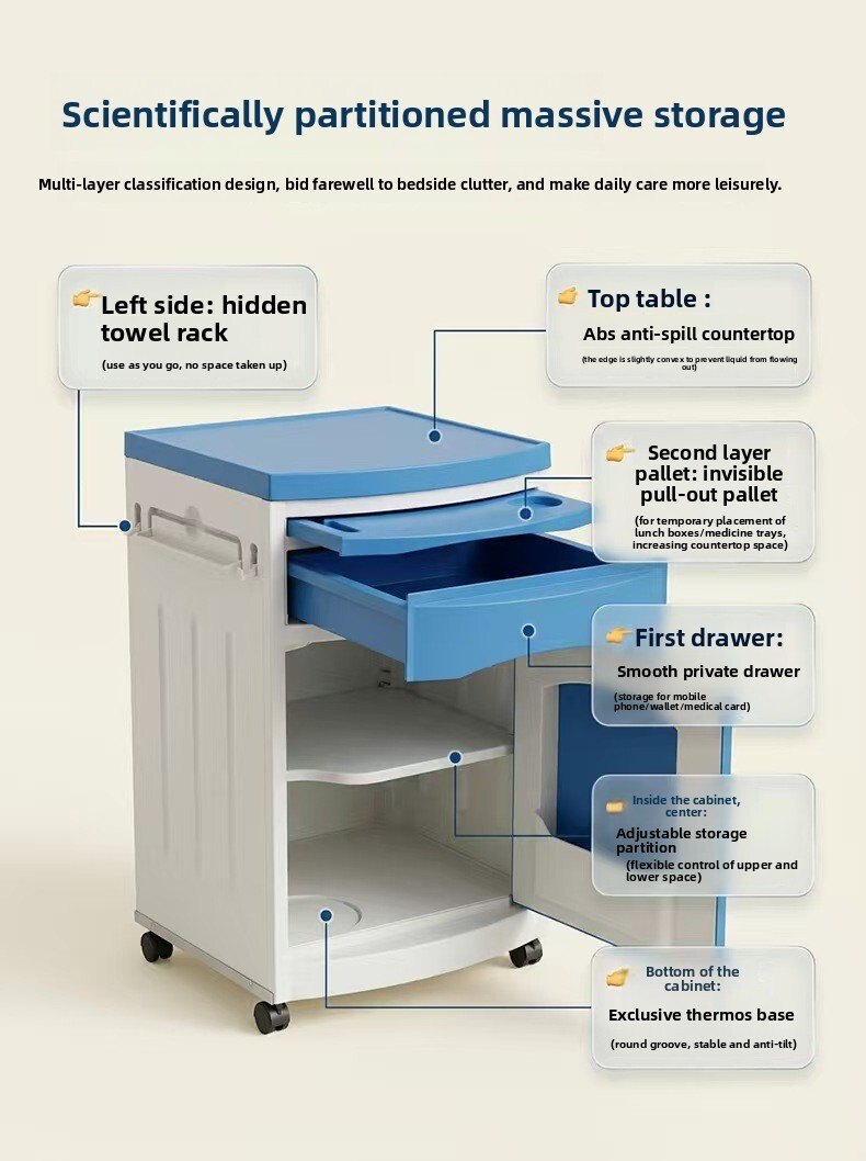 Custom Medical Bedside Cabinet with Drawer & Towel Rack